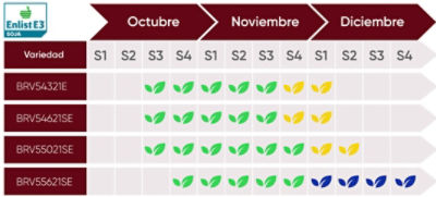 • Fenotipo atractivo, peso de grano intermedio (150g/1000)